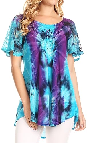 Sakkas La manica corta del giapponese merletta la camicetta del tessuto con i Sequins e il ricamo Dettagli: