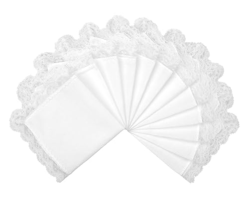 Milesky Fazzoletti Bianchi con Bordi in Pizzo 26 x 26cm, 12 Pezzi