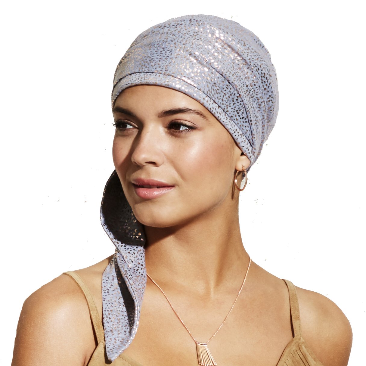 • Turbante con code lunghe che permettono di regolare il volume e la misura a seconde delle proprie esigenze.