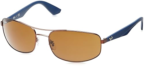 Ray-Ban – Occhiali da sole RB3527, Uomo, montatura Maronne/Blu, lenti Marrone Dettagli: