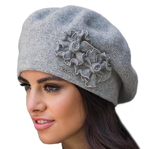 Kamea Juka Berretto Femminile Monocolorato Elegante Di Lana Con Fiorellini – Fabbricato In UE