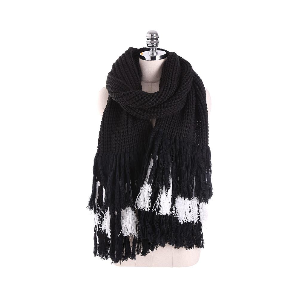 QMEI Donne Sciarpa Moda Maglia Scialle Inverno Caldo Addensato Nappa Solido Colore , Black