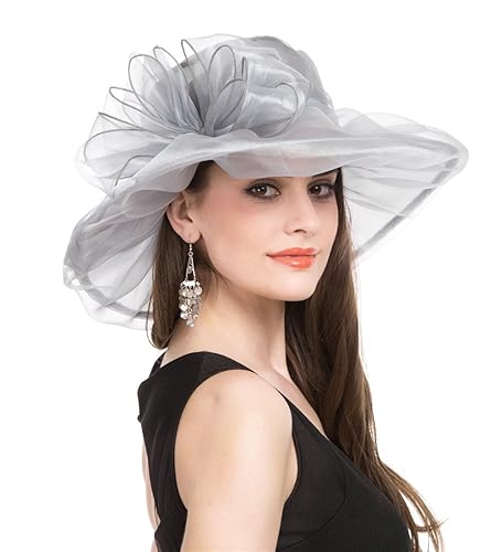 Saferin Cappello estivo da donna in organza, cappello per spiaggia, chiesa, gare di Ascot, derby, cocktail, matrimonio